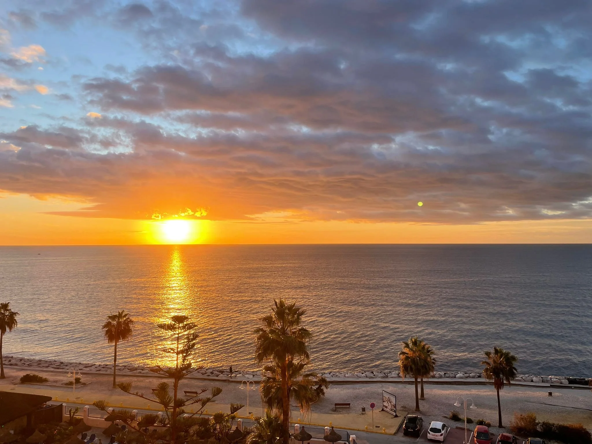 The hotel’s branding deserves clarification. There are no meaningful sunset views — sunrise, yes. Nor is there a true beach directly at the property. A short walk toward Málaga reveals a volcanic, pebbled shoreline rather than sand. Practical notes matter here: mountain-facing rooms are quieter than sea-view rooms, and during peak summer months the three elevator banks will struggle under volume.